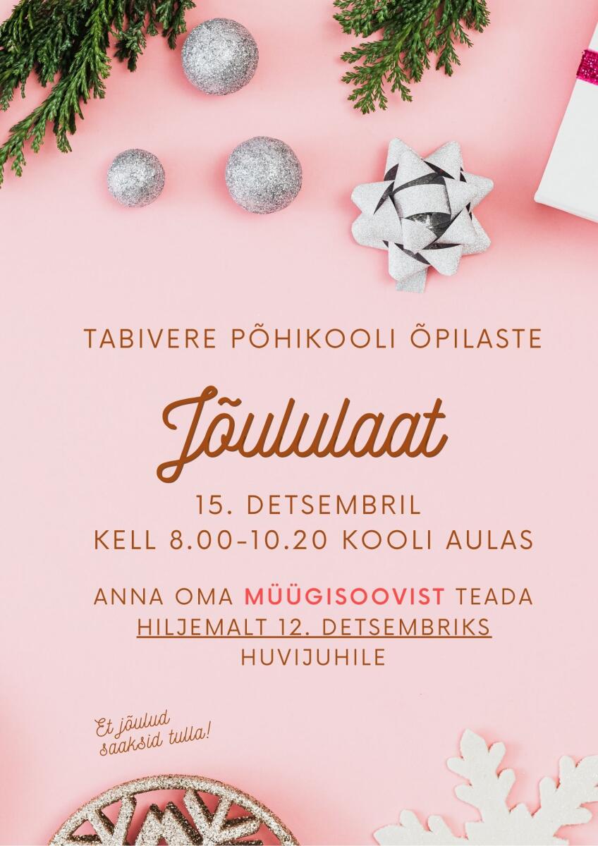 Tabivere Põhikooli Õpilaste Jõululaat toimub 15. detsembril kell 8.00–10.20 vahetundide ajal.