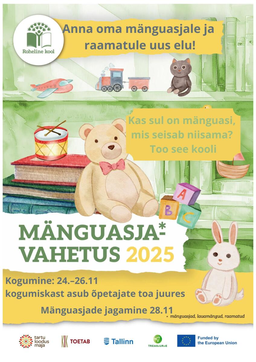 Novembri viimasel nädalal osaleb meie kool üleeestilises kampaanias „Anna oma mänguasjale ja raamatule uus elu!“